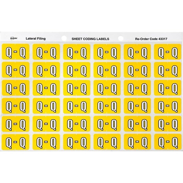 AVERY 43317 LATERAL FILE LABEL SIDE TAB COLOUR CODE Q 25 X 38MM YELLOW PACK 180