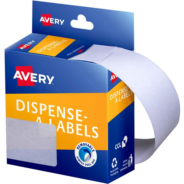 AVERY 937306 LABEL DISPENSER RECTANGLE 76 X 29MM WHITE PACK 180