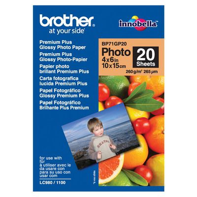 BROTHER BP-71G PREMIUM PLUS GLOSSY PHOTO PAPER 260GSM 152 X 102MM WHITE PACK 20