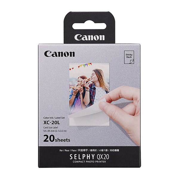 Released alongside the brand new Canon QX20 printer, this Canon XC-20L Card Size Label pack provides ink and paper for 20 beautiful sheets of sticky photo paper - The paper is split into two packs of ten, while an adequate ink cartridge is supplied