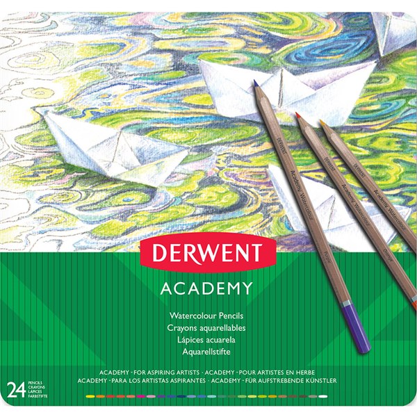 DERWENT ACADEMY WATERCOLOUR PENCILS ASSORTED TIN 24