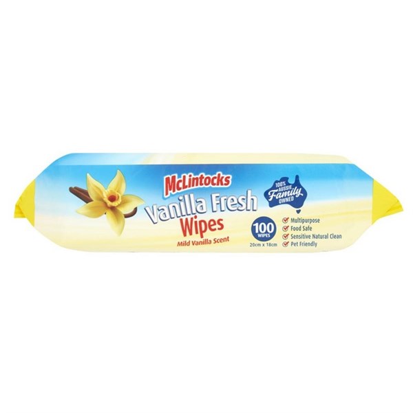 MCLINTOCKS VANILLA FRESH ANTI-BACTERIAL MULTI PURPOSE CLEANING WIPES PACK 100