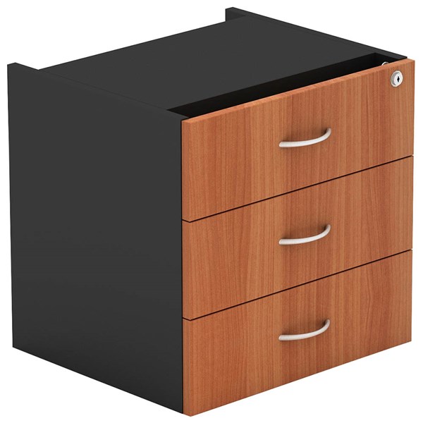 OM FIXED DESK PEDESTAL 3-DRAWER LOCKABLE 464 X 400 X 450MM CHERRY/CHARCOAL