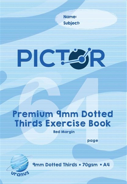 PICTOR PREMIUM EXERCISE BOOK DOTTED THIRDS 9MM 70GSM 64 PAGE A4 URANUS