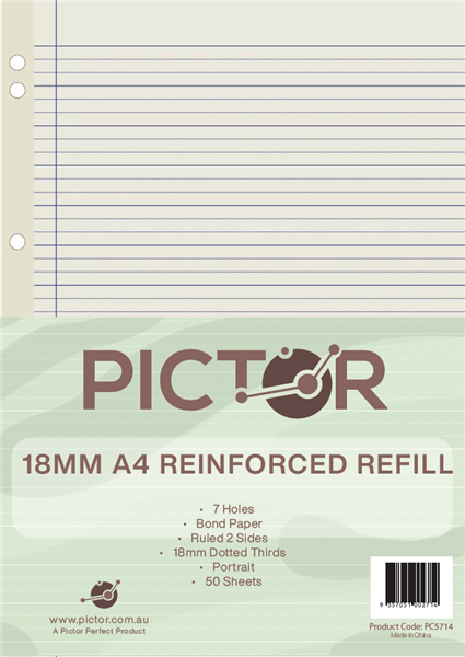 PICTOR REINFORCED A4 LOOSE LEAF REFILL 18MM DOTTED THIRDS 50 SHEET