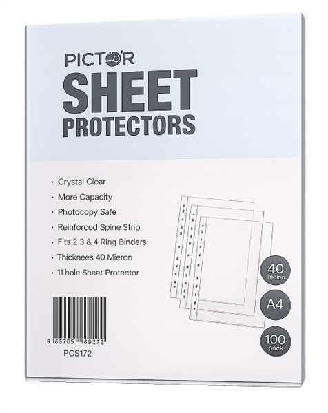 Pictor Sheet Protectors are perfect for archiving files and storing documents as pockets resist cracking and tearing