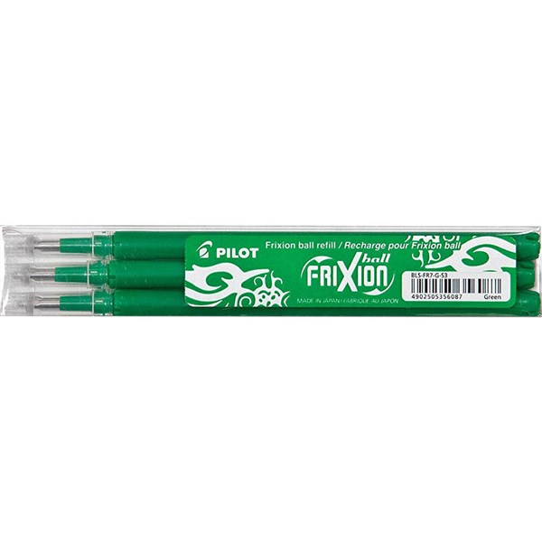 PILOT BLS-FR7 FRIXION ERASABLE ROLLERBALL GEL REFILL MEDIUM 0.7MM GREEN PACK 3