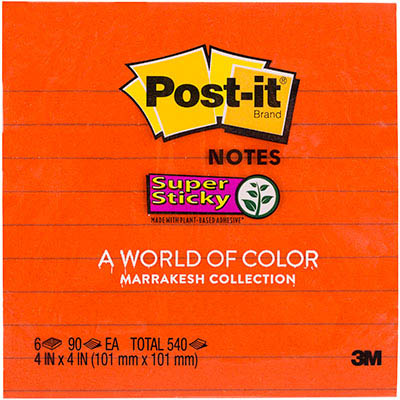 Post-it super sticky notes stick practically anywhere, revolutionary adhesive technology ensures your notes will stick securely to more surfaces. Now you can stick your notes where they will really get noticed, like monitors, doors and walls - 98mm x 98mm, Marrakesh collection, lined