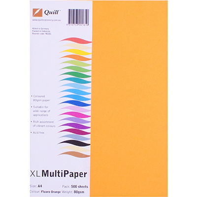QUILL XL MULTIOFFICE COLOURED A4 COPY PAPER 80GSM FLUORO ORANGE PACK 500 SHEETS