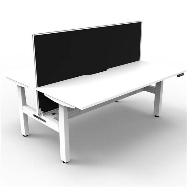 RAPIDLINE BOOST PLUS HEIGHT ADJUSTABLE DOUBLE SIDED WORKSTATION WITH SCREEN / CABLE TRAY 1800 X 750MM NATURAL WHITE TOP / WHITE FRAME / BLACK SCREEN