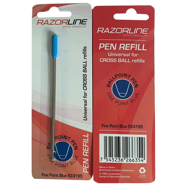 The Razorline refill RZ4190 provides a fine-point F/Blue ink line, ideal for precise writing, note-taking, and signatures - Engineered for compatibility with Cross-style pens, it offers smooth, consistent ink flow and dependable performance