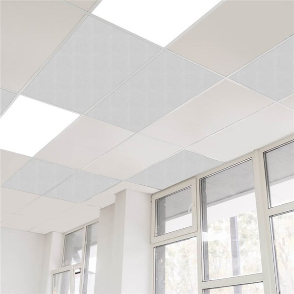 Create calm, sound-smart spaces with SANA Drop-In Ceiling Tiles in Frost - These 12mm acoustic PET panels absorb up to 40pct of noise and fit standard 1195 x 595mm ceiling grids