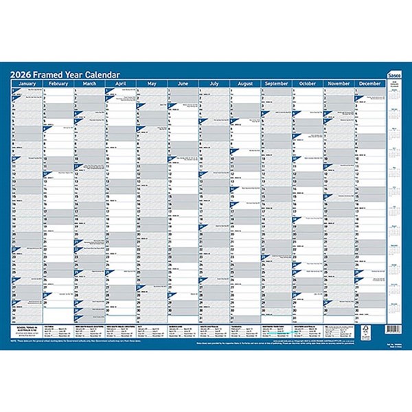 SASCO 10588 FRAMED 700 X 1000MM PLANNER YEARLY