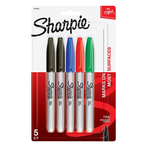 SHARPIE PERMANENT MARKER FINE POINT 1MM ASSORTED PACK OF 5