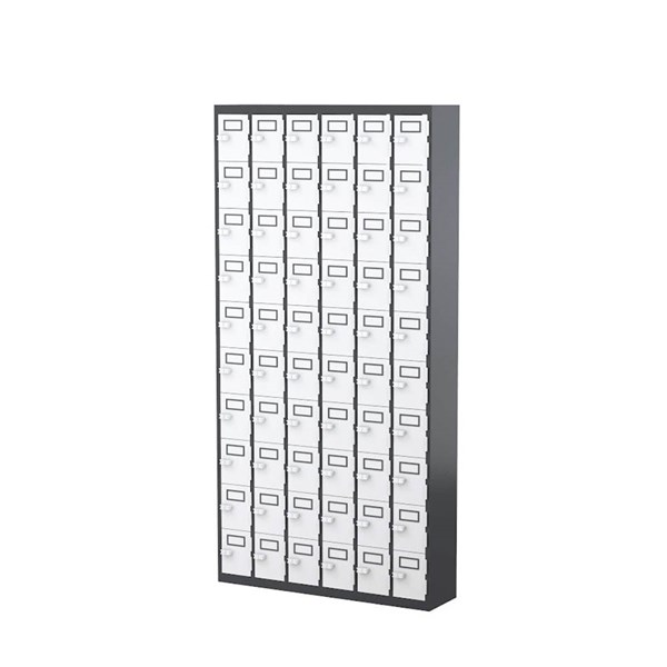 STEELCO PHONE LOCKER 60 DOOR 900 X 225 X 1810MM GRAPHITE RIPPLIE CARCASS AND WHITE SATIN DOORS