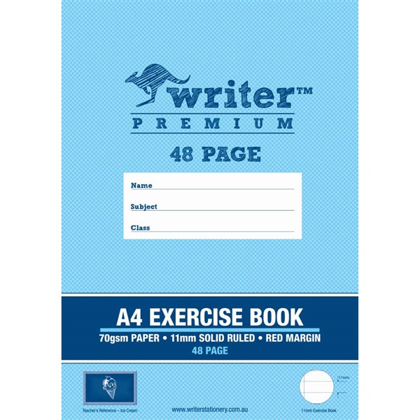 Writer Premium Exercise Books feature heavy duty covers, high quality white 70gsm paper with blue ruled lines and a red margin - High quality educational product from the Writer Premium range